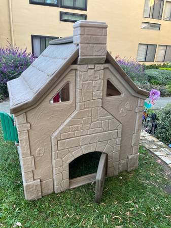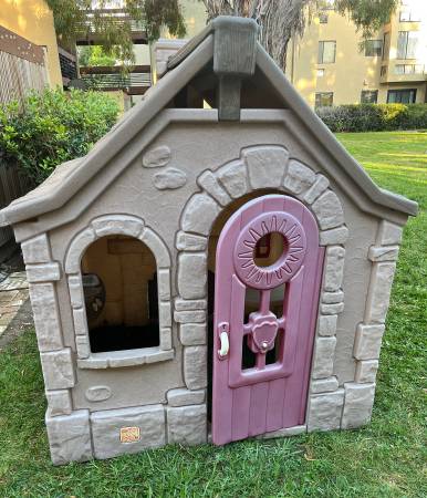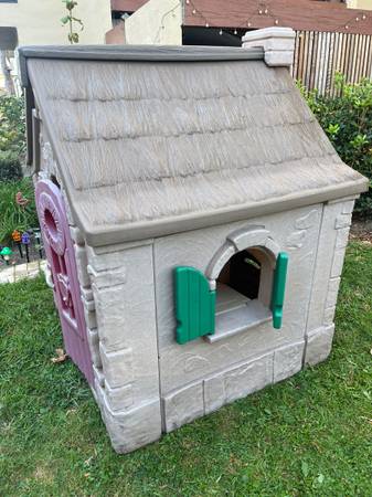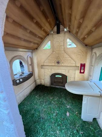 Step2 Naturally Playful Storybook Cottage Everything still works great and has just been thoroughly cleaned for a new family. Pretend sink, fireplace, windows, doorbell, and table that folds up....
