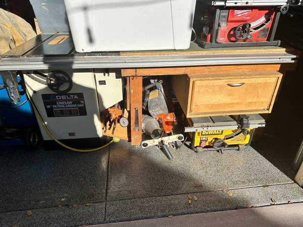 Selling a fabulous Delta Unisaw with large custom outfeed table. I've had this saw for about 12 years and used it only a few times/year. A few features: