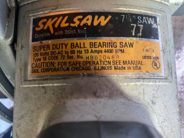 SKILSAW MODEL 77 PROFESSIONAL WORM DRIVE 7 1/4 CIRCULAR SAW WITH BLADE IN GOOD WORKING CONDITION MUST SEE SEE ALL THE PICTURES CONTACT TOM AT
