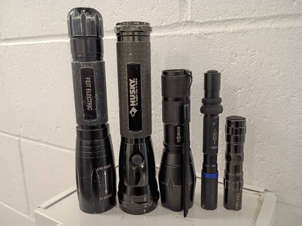 I am sell the 5 LED hand lamps Diferents size Aluminium Brands... hunsky..torch.1wP..feit electric.P.security All in perfect condition