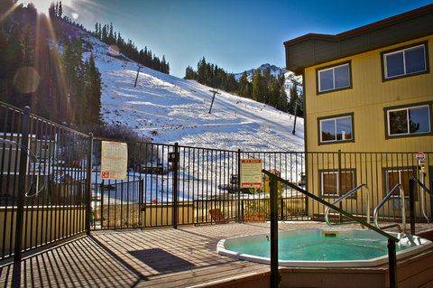 The Red Wolf Lodge “ski to door” condominiums are located to the left of the Tram, next to the Big Red chair lift. (2000 Squaw Loop Road). Red Wolf Lodge is also right next to the new direct chair lift to Alpine Meadows so you can ski both mountains!!