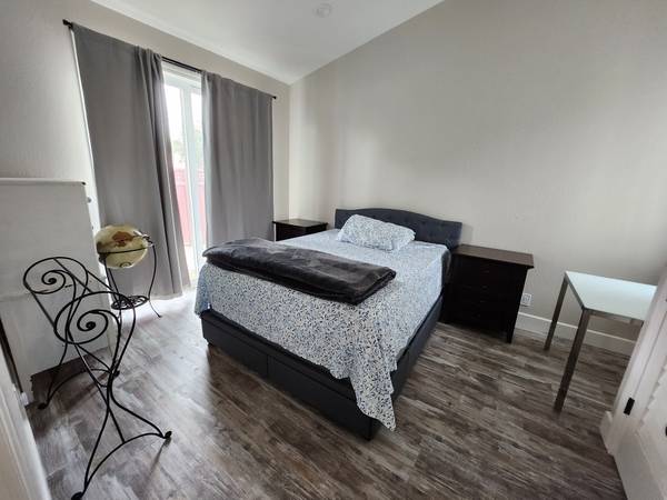 Each bedroom boasts lots of natural sunlight, new beds with extremely comfortable queen platform beds and mattresses, dressers, and side tables. The magnificent 8' sliding doors open to a beautifully paved, extra-large patio under a large oak tree.