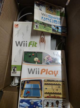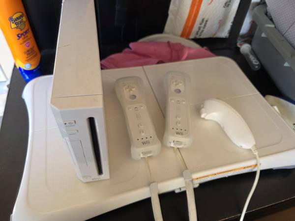 Nintendo Wii console plus two controllers and nunchucks with the wii fit board. All cords included to plug and play. Including the following games: Wii fit Wii play Wii sports