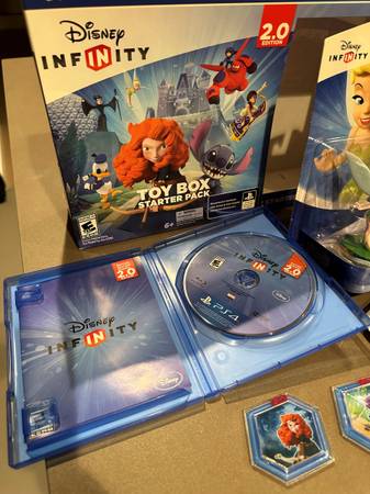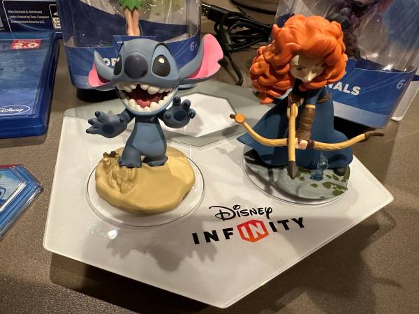 Disney Infinity 2.0 Edition starter pack with Stitch and Merida. Also new-in-box Hiro and Tinker Bell.