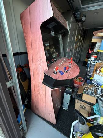 This arcade console can take coins but is currently set up for FREE play. I have had this unit for about 4 years in my garage for the kids to play, but they don't play that much. It has 1500+ arcade games from the 1980s and 1990s....all the old classics. You can set up this up in your man cave, garage or wherever, but it is clean and works like a charm. Text me if interested.