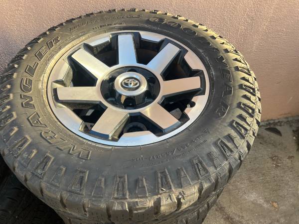 Now available for sale! Set of 4 - 265/65/17 Goodyear Wrangler Tires & Toyota Wheels for Tacoma Good treads Ready to roll $1050 Location: Daly City