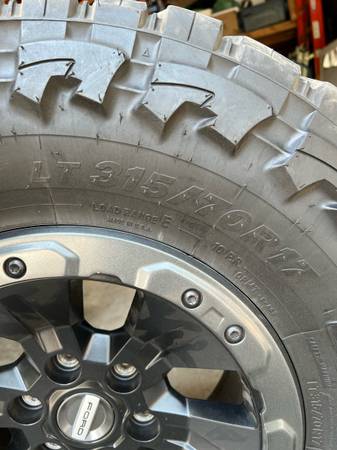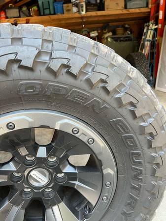 The Toyo Open County tires have about 50% life left on them. Mainly used for commuting. No sidewall damage from rock crawling or off-road driving. Tire size: 315/70R17