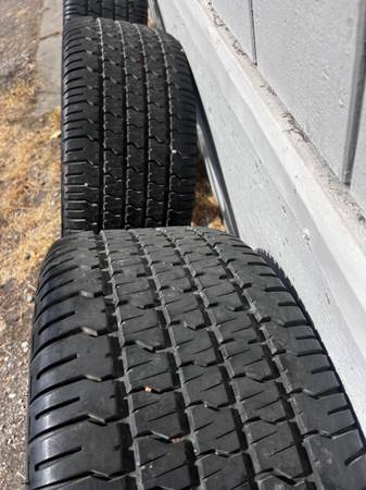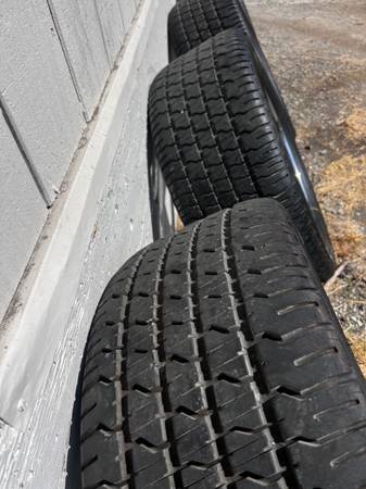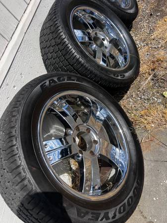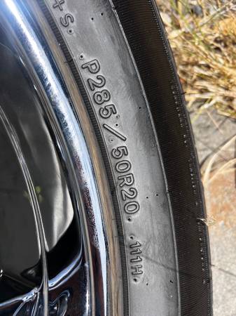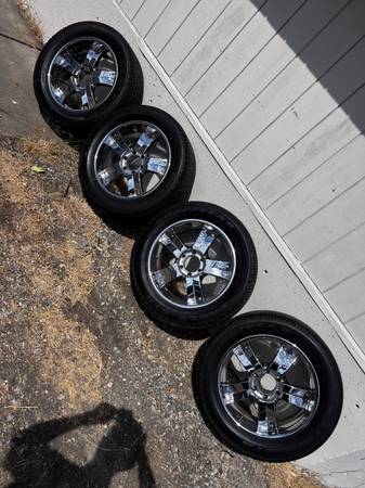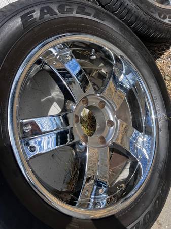 Hi, I have four rims and tires in excellent condition no curb, rash or pitting they came off my Yukon. The 4 tires all match 285/50/20. They come with center caps and lug nuts I have them in a bag....