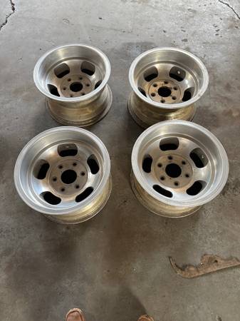 Set of four Shelby 500 slot mags 6 lug 8.5 x 15 removed from my 57 Chevy truck a long time ago very good condition SORRY I DO NOT TEXT MY PHONE NUMBER IS IN THE REPLY BOX IF YOURE READING THIS AD...