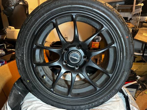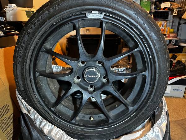 Rare old school JDM CR Kai Sport wheels (x4) in good condition. Wrapped in Ferderal Super Steel 595 Tires with about 90% life and even wear. Dated 2020 & 2022, should be fine to drive on. No dents or major scrapes; has some paint chip from being old. $1200