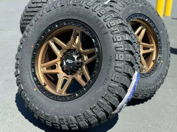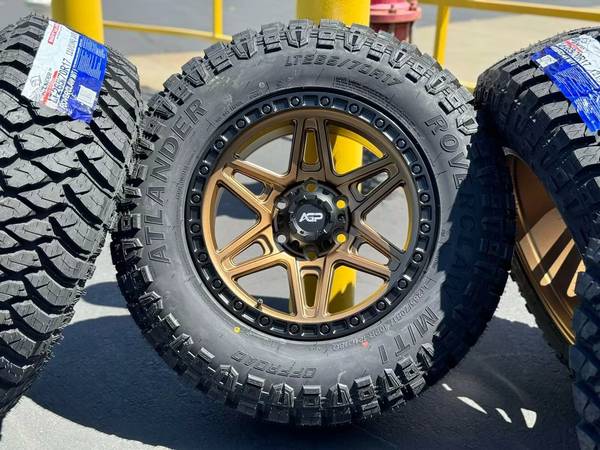 Set of 4 AGP 307 style aftermarket wheels with 265/70r17 Atlander Roverclaw M/T tires 17x9 +0mm offset 6x139.7 bolt pattern FITS 6 lug Toyota 1996 - 2022 Toyota 4runner 1995 - 2022 Toyota Tacoma...