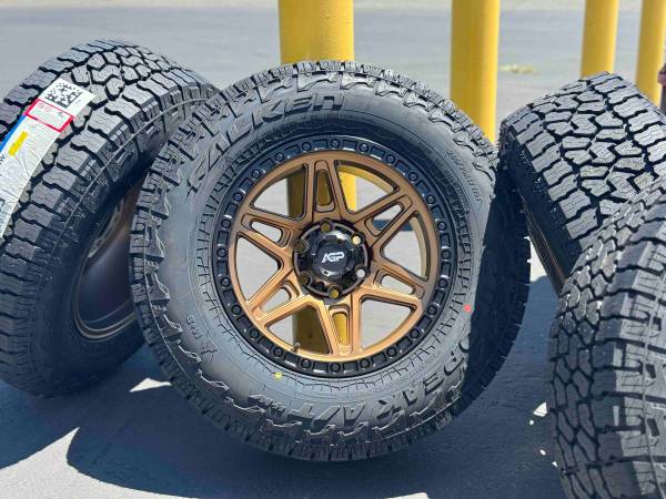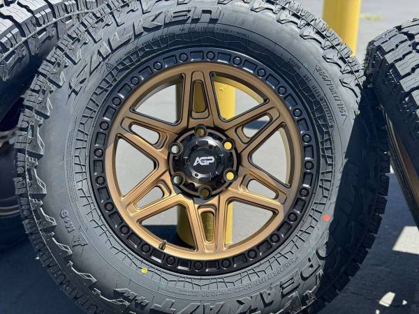 Set of 4 AGP aftermarket wheels with 265/70R17 Falken Wildpeak AT4w tires 17x9 +0mm offset 6x139.7 bolt pattern FITS 6 lug Toyota 1996 - 2025 Toyota 4runner 1995 - 2025 Toyota Tacoma 2007 - 2014...