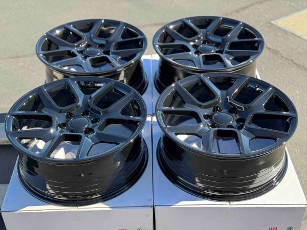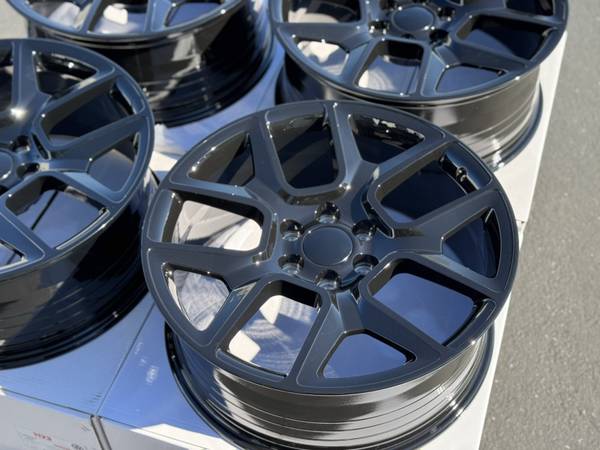 Brand new set of 4 22-inch aftermarket replica wheels factory Specs gloss black rims Fitment: 6x139.7 bolt pattern +24mm offset Dodge Ram: 2019-2025 Ram 1500 and TRX As long as it's a newer year...