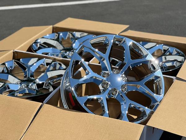 Brand new set of 4 Chrome 22" Rims 22x9 +24mm offset 6x139 bolt pattern Fits 2000-2024 Chevy GMC Cadillac Silverado, Sierra, Yukon, Denali, Suburban, Tahoe, Escalade Free delivery within 50 miles