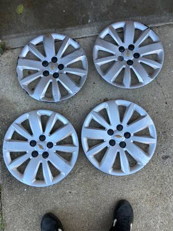 2 original chevy cruze wheels and 2 aftermarket wheels with 115mm x 5 x16", they will fit on cruze and trax . the aftermarket wheels have light dent but drove fine and held air, 4)
