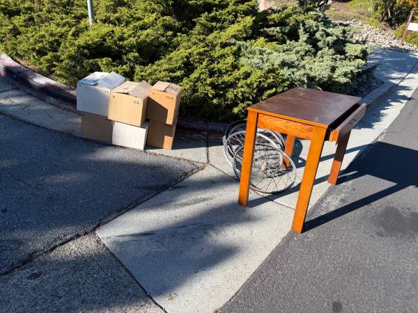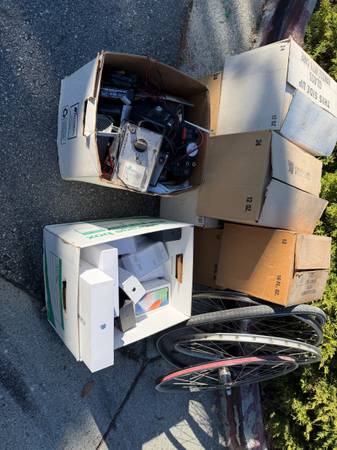 Corner of Talbryn and Rose Lane in Belmont Beermaking bottles Small desk 26" bicycle wheels, Mavic iPhone and Mac boxes, Apple