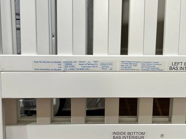 Used crib in ok condition. Disassembled. Overall dimensions: 56 wide, 31.5 deep, 37 tall.