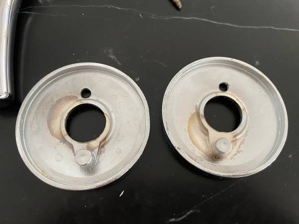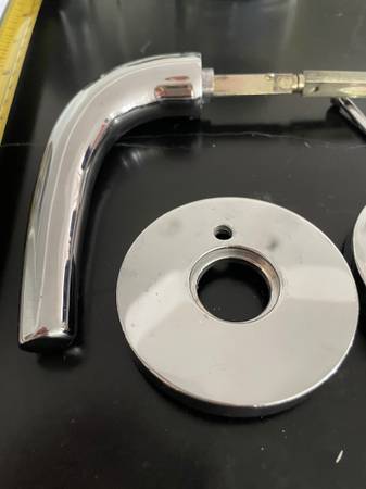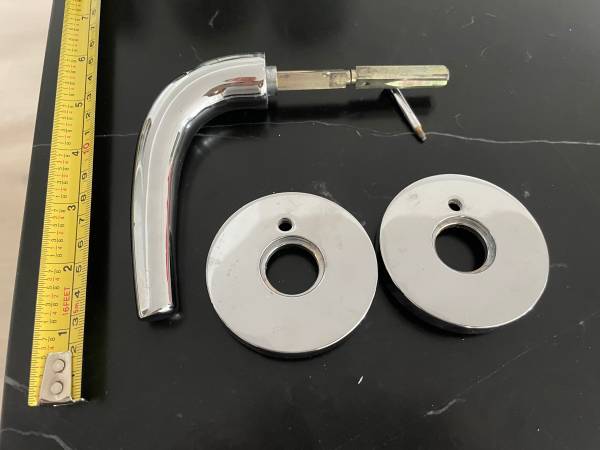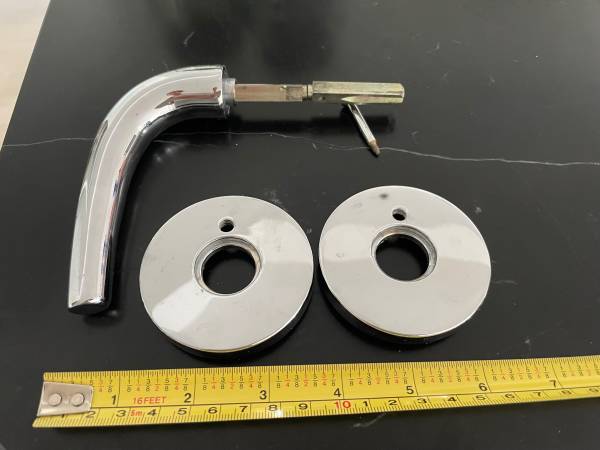 High quality, heavy chrome One side door handle is missing Possibly made by Hans Grohe but unmarked Was used for bathroom door See photos