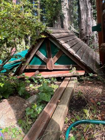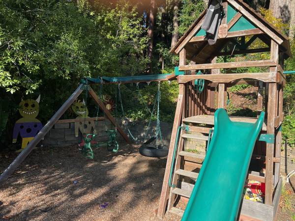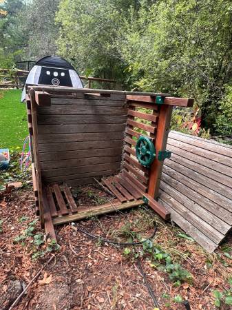 Backyard Adventure play structure that was taken down a while ago and is in pieces. Should have everything to put it back together including accessories, hardware, etc. This includes swings, tire swing, glider swing, rock wall, slide, and place below for sand box. Some of the wood is rotting out and may need to be replaced. Bring truck big enough to load everything. Available for pickup ASAP. Thanks for looking.