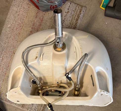 Bath sink from kohler with pedestal No chips or cracks. Very good condition Replaced with a new vanity , hence giving it away. Includes faucet, which is attached to the sink. See pictures. Pick up...