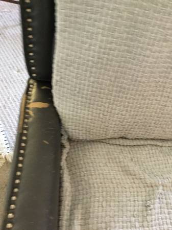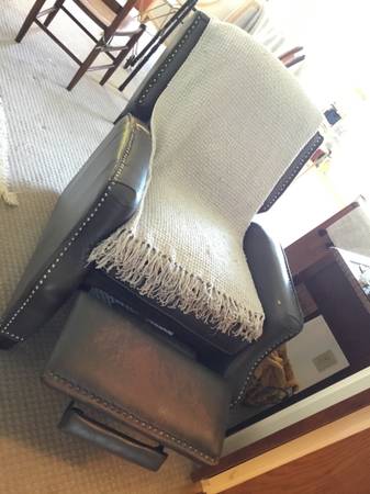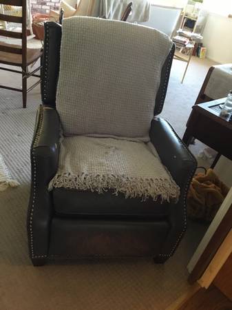 Gray recliner, reclines great. I’m including the throw blanket to cover upholstery scratches.
