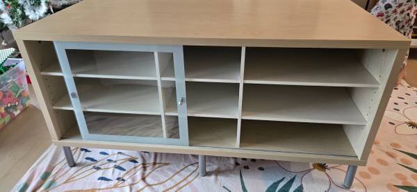 A well loved ikea tv cabinet. Measures: 51.5"x23.5"×26". Still in sturdy and good condition but with some wear shown. FREE to the first person that can come and pick up! Save me from landfill...