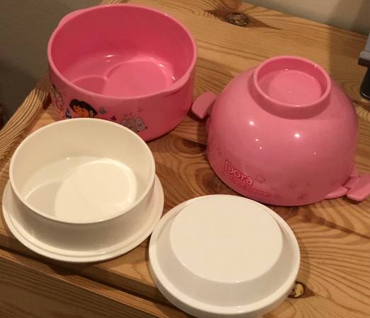 Free Dora themed lunch box with a small box inside and the outer lid can be used as a cup /bowl. Never used