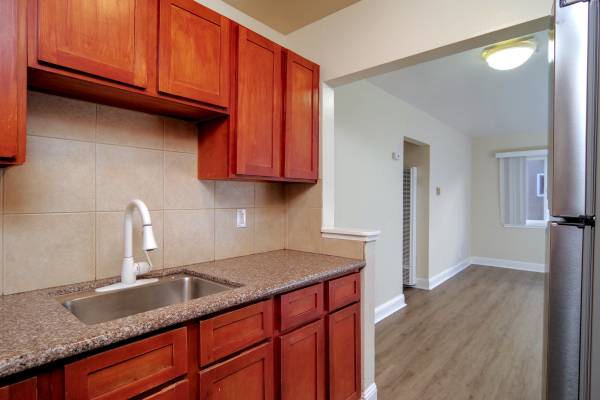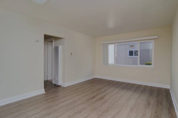 Welcome to Cadillac Apartments! This unit is a beautiful, remodeled, spacious 1 bedroom 1 bath with new luxury hardwood flooring, beautiful countertops in the kitchen, and extensive kitchen cabinet space! A double-sided gas wall heater keeps you warm on those cool nights. The bedroom has large mirrored closet doors that illuminate any incoming natural sunlight, and a ceiling fan to keep the air circulating. Brand New Dual pane windows to help with proper insulation.
