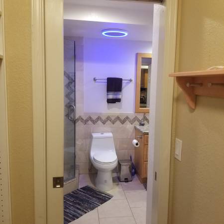 Adjustable Queen size bed, night stands and night lamp, Table, chairs, desk lamp, Shelves, smart HD TV, private 5G WiFi, Fast internet (1Gbps cable modem), Blue tooth built-in speaker in the bathroom, lots of natural lights, top-down bottom-up blinds, doggy-door, key-code entry (No lost keys) and much more ...