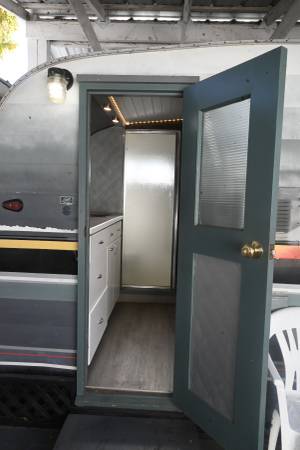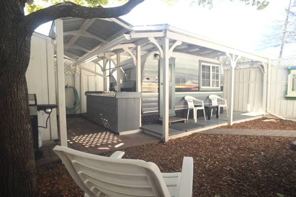 - Kitchenette inside with sink, hot plate, coffeemaker, small refrigerator, microwave, dinnerware and cooking utensils
