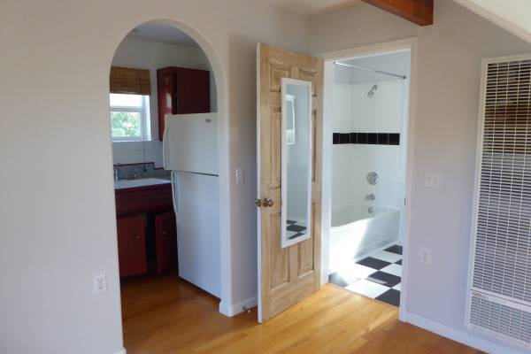Home is newly remodeled with hard-wood flooring and paint. This 2 level home has an open space floor plan. This home has an open bedroom/office, a family room with high ceilings, a nice galley kitchen, and a spacey full bath. House includes a private laundry room which is accessible from the outside only, and is complete with it's own washer/dryer unit.