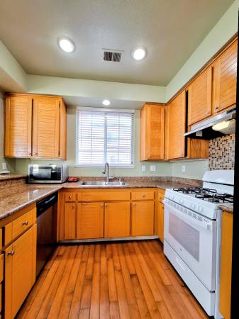 Spacious tri-level 3bd, 2.5ba townhouse. This is an end unit, with street parking directly in front of the unit, in addition to the 2-car attached garage and open guest parking. Washer and dryer included in the garage. Balcony at the front entrance. Laminate wood flooring on the first two levels, carpet on the third level, and tile flooring in the bathrooms. The living room-dining room combo has recessed lighting and gas fireplace. The kitchen has granite countertops with breakfast bar, a NEW stainless steel dishwasher, NEW stainless steel fridge, gas range, stainless steel microwave, and a stainless steel sink with garbage disposal. All bedrooms located on the top floor and have bathrooms in-suite. The guest bedrooms share a bathroom, which includes a granite countertop and a private room for the shower and commode. The primary bedroom has one closet in the room and another closet in the bathroom. The primary bathroom includes granite countertop, private room for the commode, and a large shower-tub combo. This home is located in the California Landing Villas HOA, which includes a toddler park and pool. It's also located directly across from the Dixon-Landing Park, which offers a playground, picnic tables, baseball field, basket ball court, and tennis courts. Perfect commuting location; off the 880 and next to the Bart Station. Don't miss the opportunity to call this place your new home!