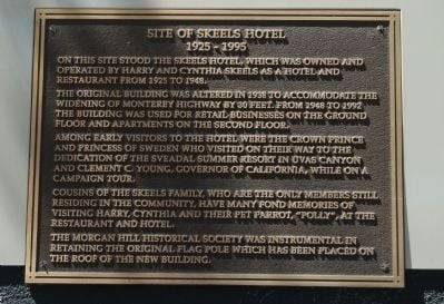 Historical Facts- The Skeels Hotel served local travelers and Swedish royalty alike during visits to Morgan Hill. This image, from 1933, shows the hotel before its façade and the front 17 feet of the building were removed to accommodate the widening of Monterey Road in 1948.