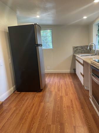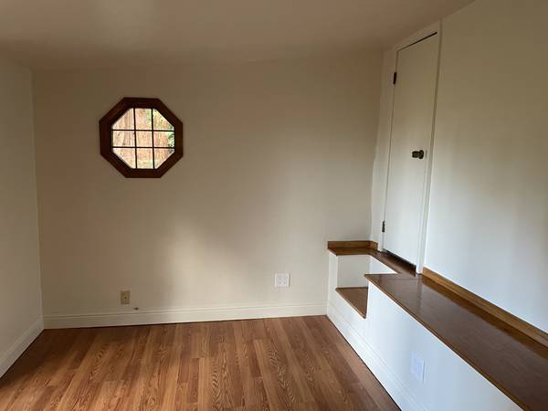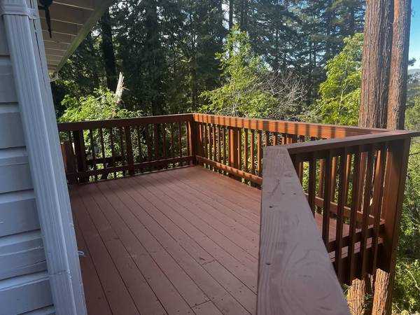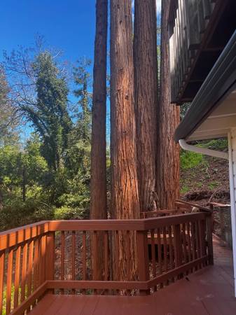 1 bedroom, 1 bath, plus Kitchen/living area and wood deck on the lowest part of a three story duplex. Private wood deck with expansive views and redwood trees. Laundry room is shared and has it's own separate entrance. 1 parking space in front of the duplex.