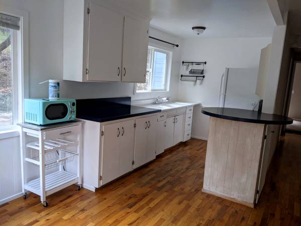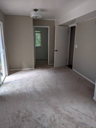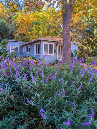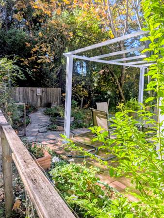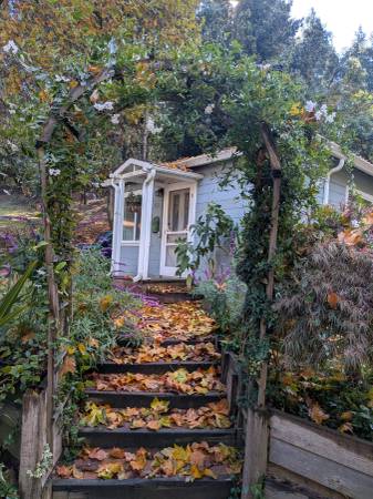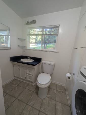 Cute guest cottage (approximately 800 ft2 ) with large master bedroom and walk in closet. Small second bedroom/nursery or office. Two zone heater/air conditioner recently installed. Wood burning stove. Hardwood floors in kitchen, eating area and living room. Carpet in bedrooms. Shower only. Washer and dryer is provided. Sliding door to private brick patio and enclosed back garden. Very easy access to Highway 17 and Bear Creek - ten minutes to downtown Los Gatos. Overlooks beautiful open field (full of flowers in spring and early summer) and visiting deer. Redwood trees to the back of the house. Sunny location/country living.