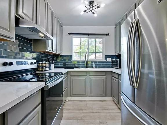 This 3-bedroom, 2-bathroom home offers a modern interior and functional layout in a convenient San Jose location. The kitchen is equipped with essential appliances including an oven, microwave, toaster, blender, and full-size refrigerator/freezer. A breakfast nook and a dining table each seat four.