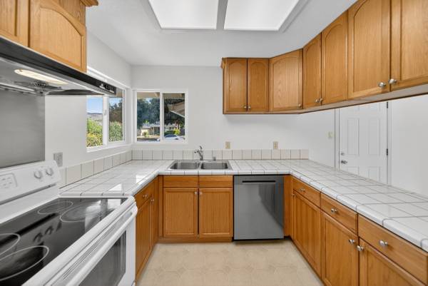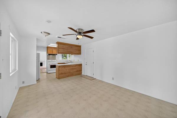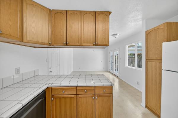 As you step through to the opposite side of the home, you'll get a glimpse into the Kitchen. This light and spacious kitchen comes with modern cabinetry, a brand new refrigerator, and a dishwasher for your convenience.