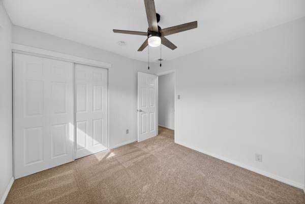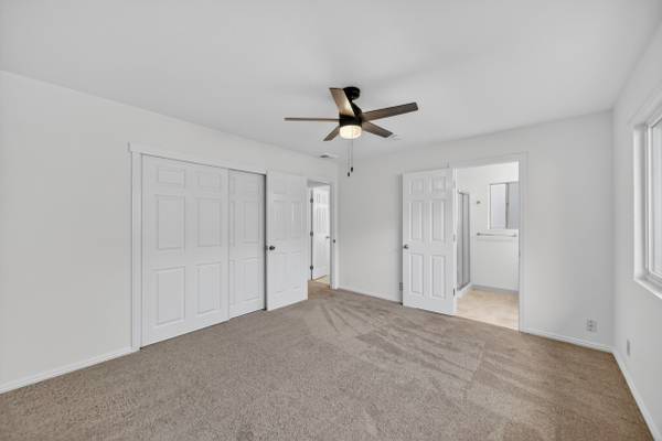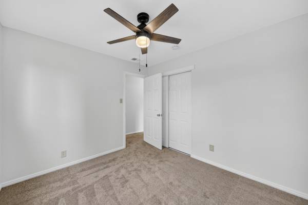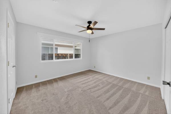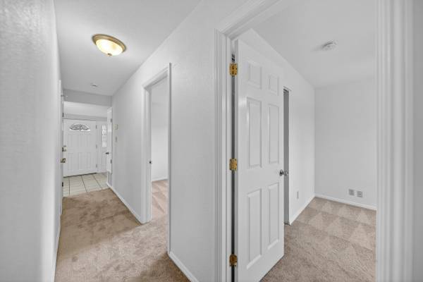 The Bedrooms and Bathrooms of the home are located down the hallway of the house. The Primary Bedroom suite, located towards the back of the house is definitely worth mentioning due to its spacious size! With an en-suite Bath, you're sure to relax and unwind after a long day's work. The other two bedrooms are all freshly painted, spacious and have brand-new carpeting as well.