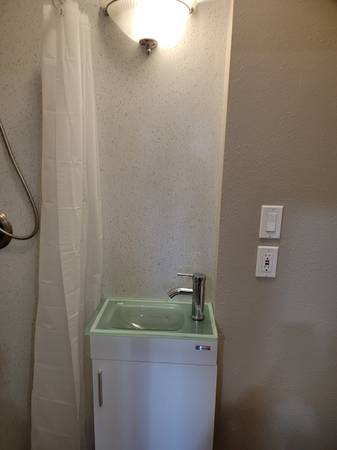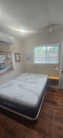 Newly built (2022) detached detached home that has it all: kitchenette, closet, washer and dryer, AC, Instant how water, fenced-in yard yard with a patio.