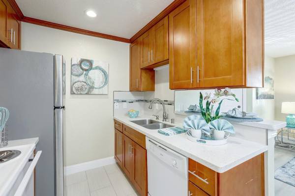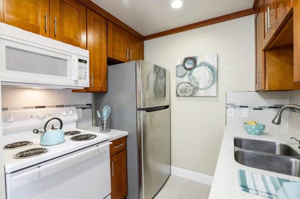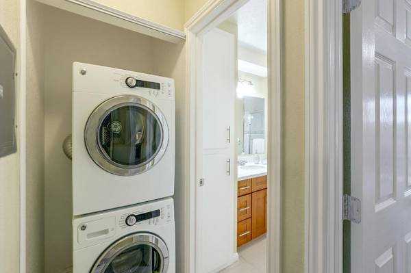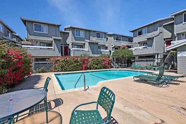Nested in the desirable Saratoga Place community, this home offers open floor plan, brand new flooring in the living room and bedroom, nice kitchen with trendy backsplash. Convenient in-unit laundry, washer/dryer/refrigerator all included! Extra storage space in the yard. Ample flowering trees throughout the community, splendid swimming pool and hot tub perfect for summer fun! Low maintenance, minutes to many amenities including shopping, dining, and nursery gardens. Super convenient access to Highway 85.