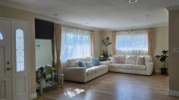 • Bright, open-concept layout with a spacious sitting room and elegant wood flooring