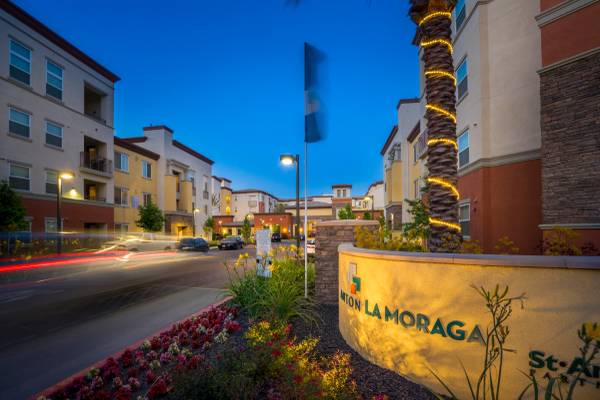 La Moraga Apartments is a 275 unit, multifamily rental project located on the Hitachi Campus in the heart of the Silicon Valley. Future residents of a La Moraga Apartments are captivated by it's unique mission style and charm. From the beautifully landscaped courtyards, to the elaborate mission towers and grand arches, it is quite obvious that there was not a single detail overlooked. Those who will call La Moraga home, enjoy the pleasures of a fully loaded, business and entertainment community center. This center features a full kitchen, icafe, media center, shuffleboard and two story gym. When it is time to enjoy a day of relaxation, residents can be found sitting poolside reading a book and barbecuing their favorite dish. Each unit includes expansive kitchens and living areas, personal patios, walk-in closets, and stainless steel appliances. The Village Oaks shopping center is just across the street and within walking distance