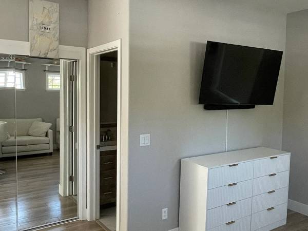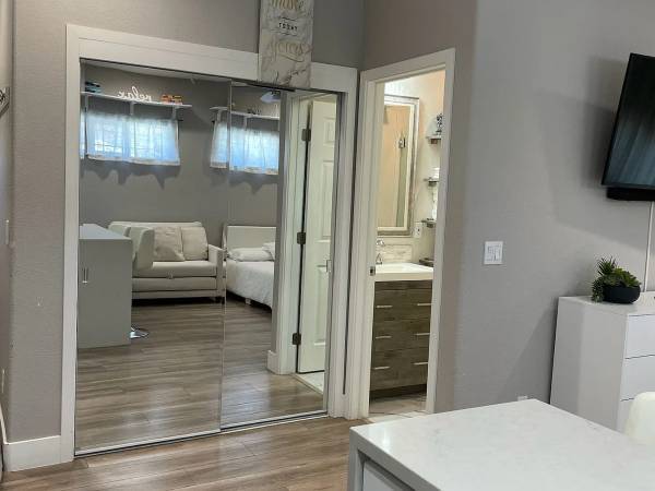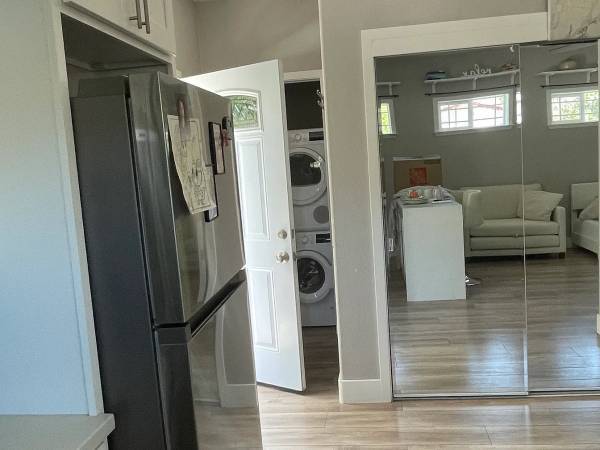 This beautifully studio offers a quiet, comfortable living space ideal for a traveling professional or solo renter. It features a full-size bed, a private walk-in shower, and a modern full kitchen equipped with a stove/oven. With in-unit washer and dryer, climate-controlled heating and air conditioning through a mini-split system, and a designated parking spot on the driveway, the unit is both functional and convenient. Located in a peaceful residential neighborhood, it offers privacy patio and entrance, with a strict no-pets policy to maintain a clean and allergy-friendly environment.