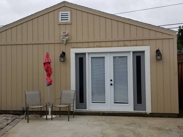 This Studio is Separate from the Main House with Private French doors Entrance, Full Bathroom, and Kitchenette. Fully Furnished with Queen Size Bed, Storage, Dresser, Closet, Smart TV, Mini Split...