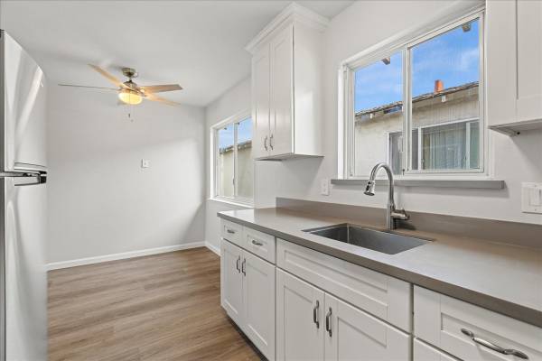 This fully remodeled downstairs unit features LVT flooring throughout, dual pane windows and 2 tone paint. Kitchen has stainless steel appliances including a fridge, stove/oven, dishwasher, and microwave. This unit comes with 1 carport space.