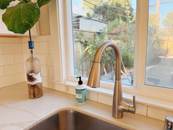 * Newly installed water heater and kitchen faucet