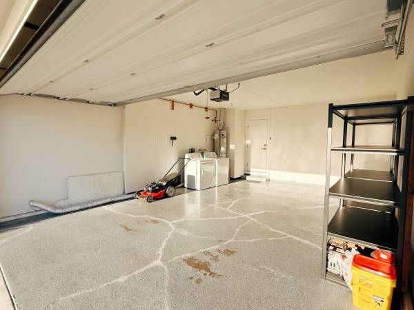 * Two-car attached garage with washer, dryer, and heavy-duty shelving