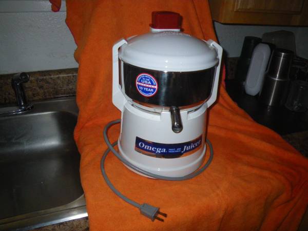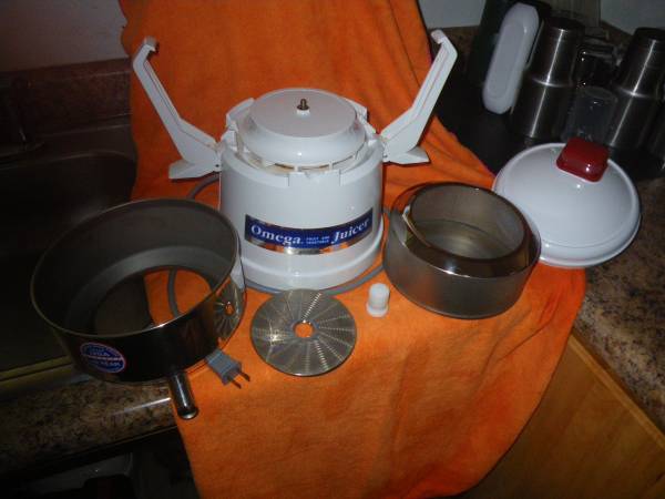 omega juicer in like new condition comes with cutting disc metal pulp basket stainless steel and push bar runs strong and quiet