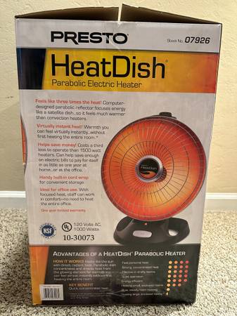 Presto Heat Dish Parabolic Electric Heater 120v AC 1000 Watts