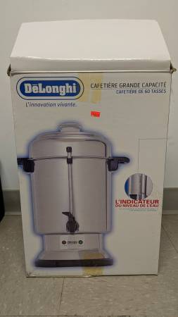 DeLonghi DCU62 The Ultimate Coffee Urn 20-60 cups Stainless Steel Works New, in the original box.